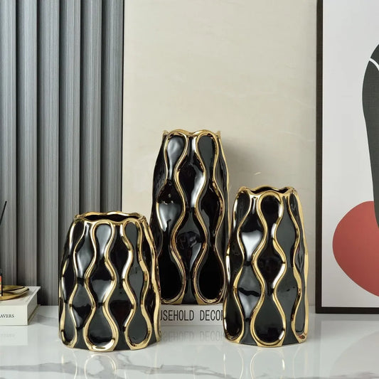 Vaso de Cerâmica de Luxo com Detalhes Dourados